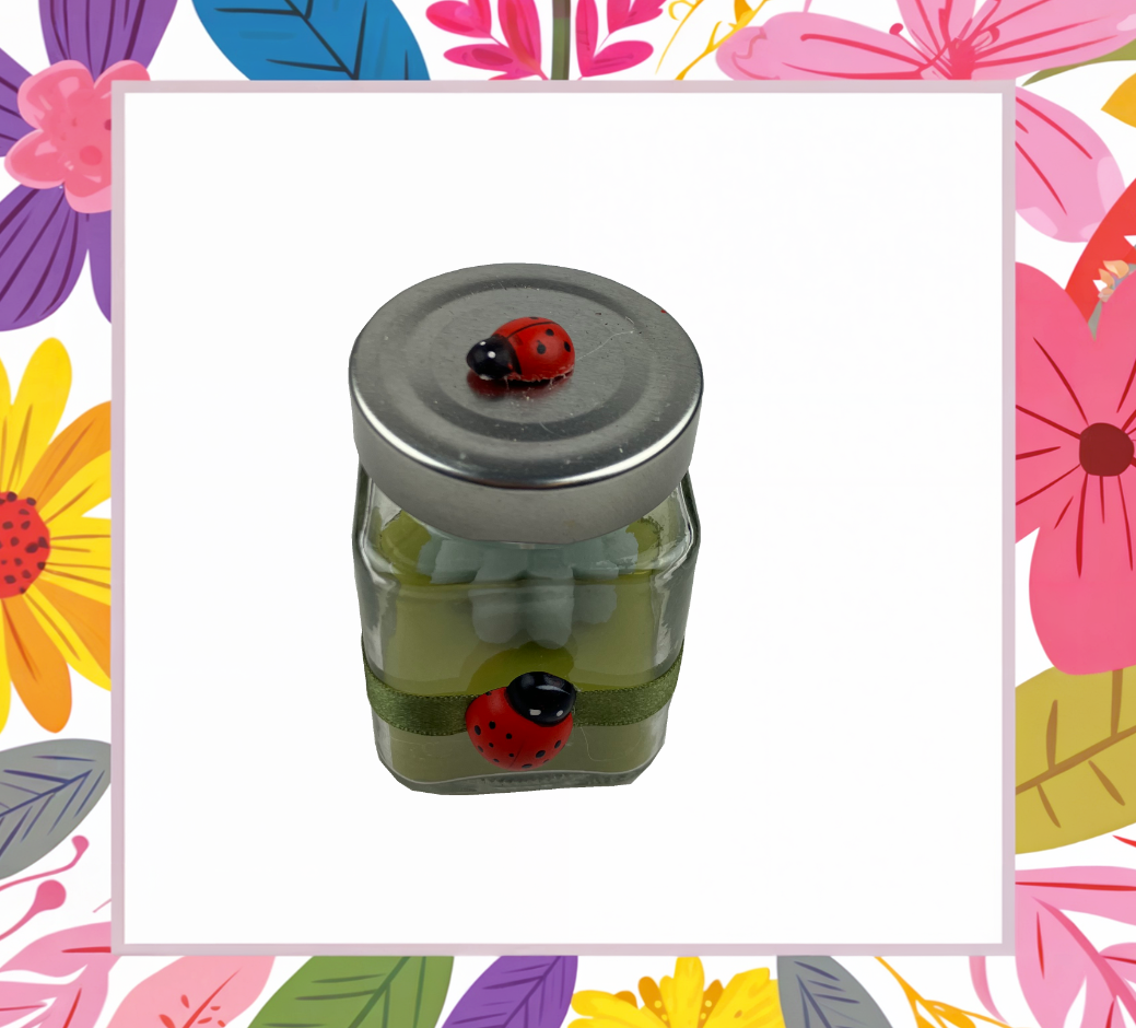 Buitenkaars in potje met leuk gedecoreerd dekseltje.