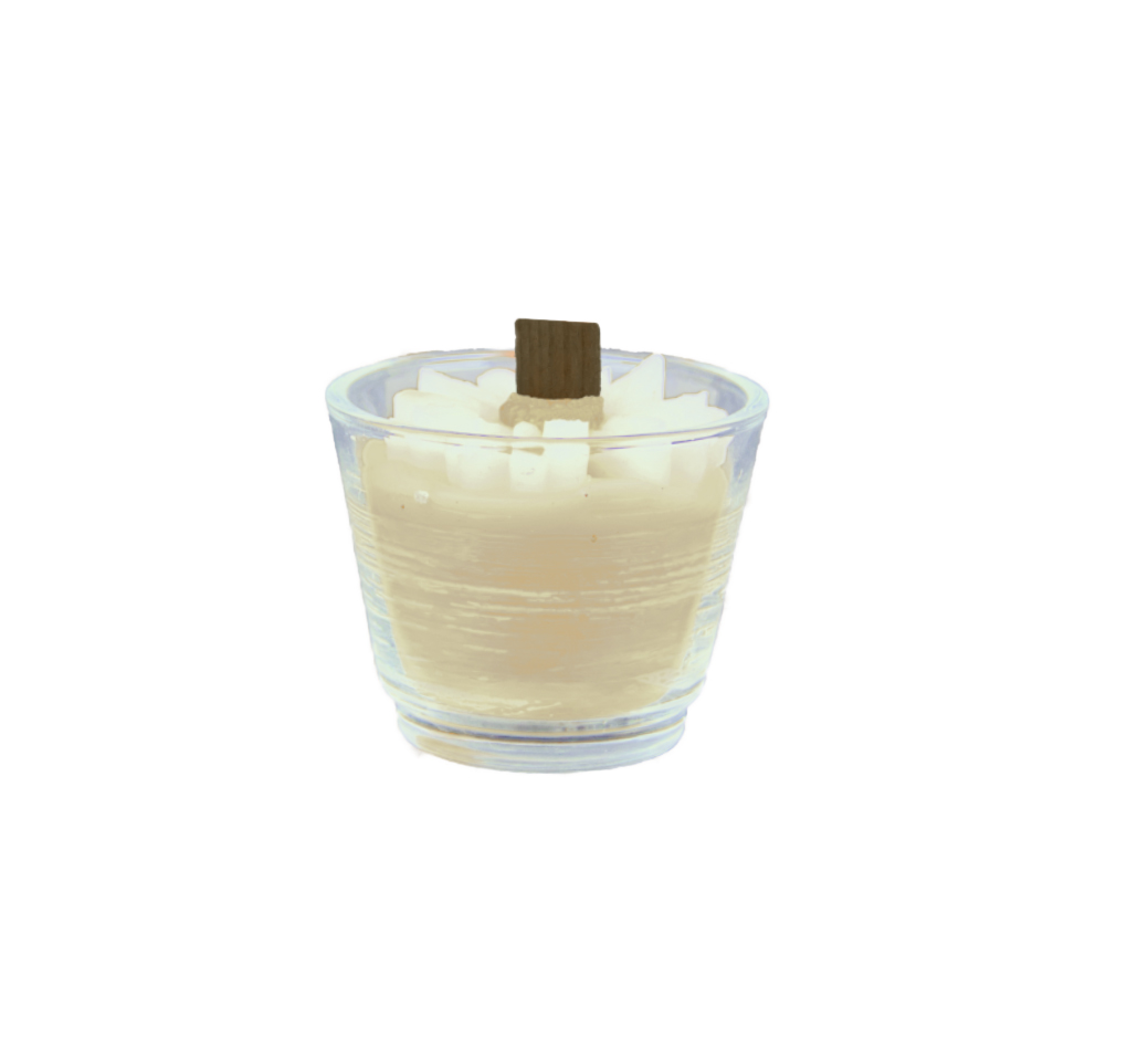 Glazen windlichtje met kaars en bloemdecoratie inclusief houten lont.
