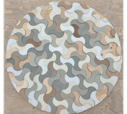 De mix van zowel blanke als geverfde houten mozaïekstukken geeft elke ruimte een warm en rustgevende uitstraling.